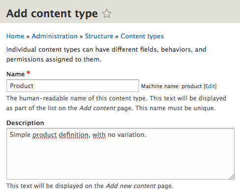 Create a product content type